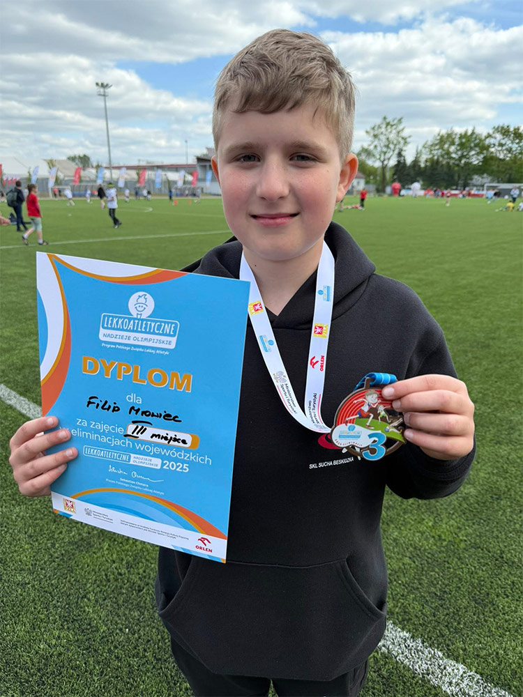 • Filip Mrowiec – 3. miejsce na 60 m i w rzucie p. palantową
